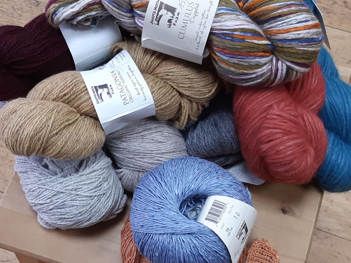 Noch mehr Garne aus Neuseeland, Italien, Schottland, den USA können Sie entdecken. Ergänzt wird das internationale Sortiment durch einheimische Firmen wie Schoppel oder "Rohrspatz und Wollmeise".